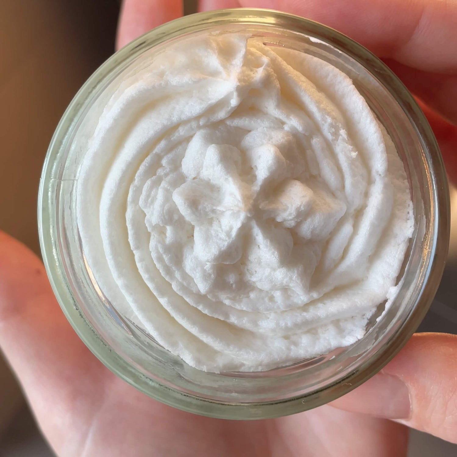 - Eine kleine Menge der Duschsahne mit den Fingern entnehmen